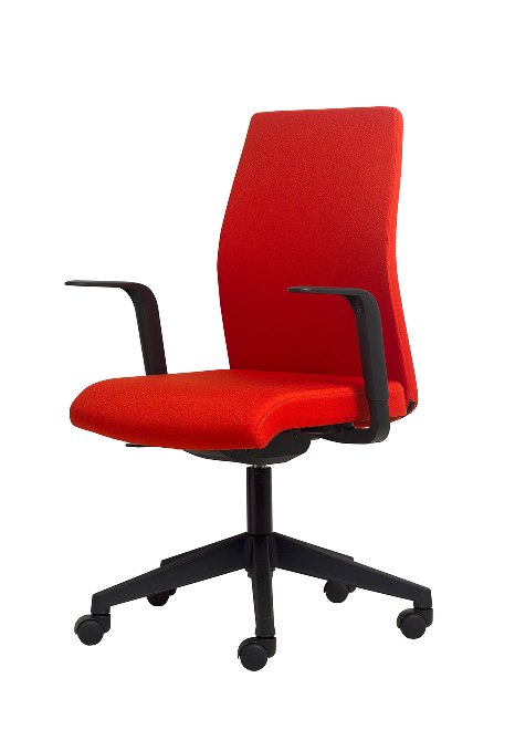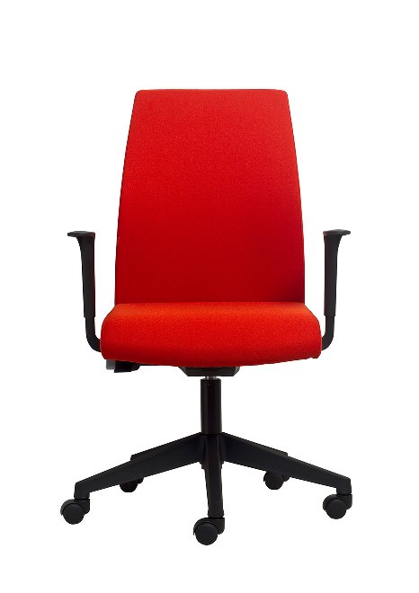 RESPALDO: Alto o medio en espuma moldeada ASIENTO: Espuma moldeada BASE GIRATORIA: Piramidal negra o blanca MECANISMO: Syncron APOYABRAZOS: Brazos ajustables en altura en blanco o negro