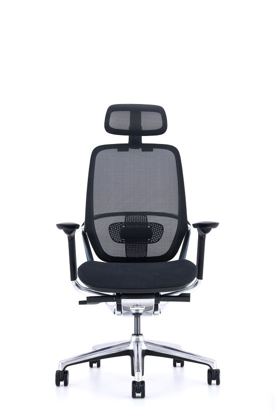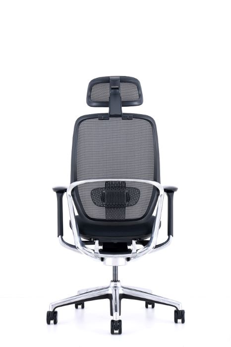 RESPALDO: Alto en red, ajustable en altura ASIENTO: Tapizado BASE GIRATORIA: Negra o de aluminio pulido MECANISMO: en aluminio pulido con bloqueo multiposicional