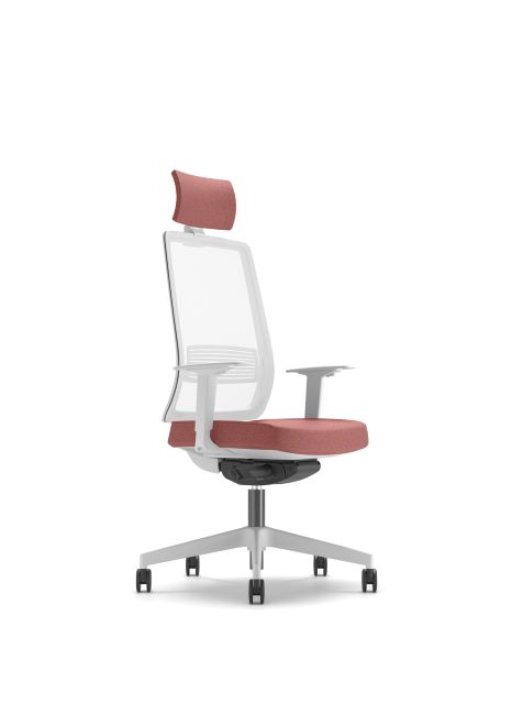 RESPALDO: Malla blanca o negra. Soporte lumbar ajustable ASIENTO: Recubierto con espuma flexible APOYABRAZOS: Ajustable en altura BASE: Giratoria piramidal OPCIONAL: reposacabezas