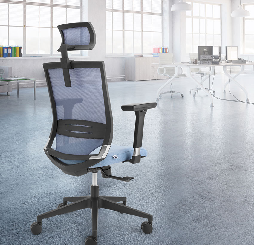 RESPALDO: Malla gris o negra. Soporte lumbar ajustable ASIENTO: Recubierto con espuma flexible APOYABRAZOS: Ajustable en altura BASE: Giratoria piramidal OPCIONAL: reposacabezas