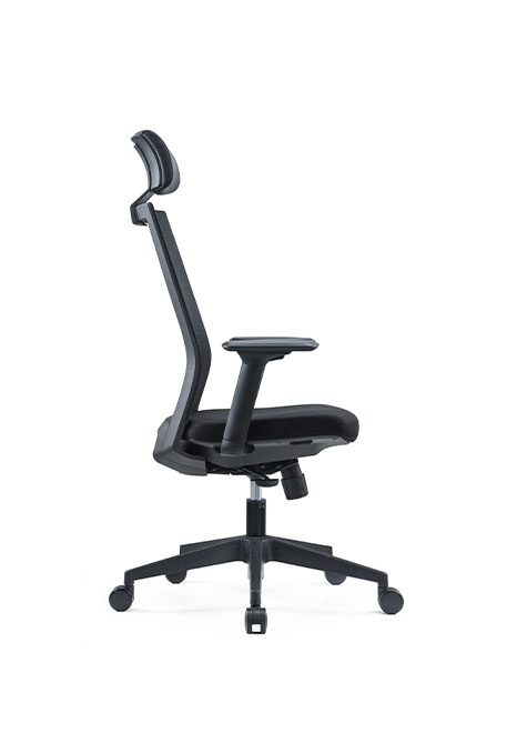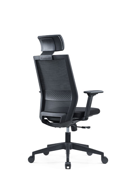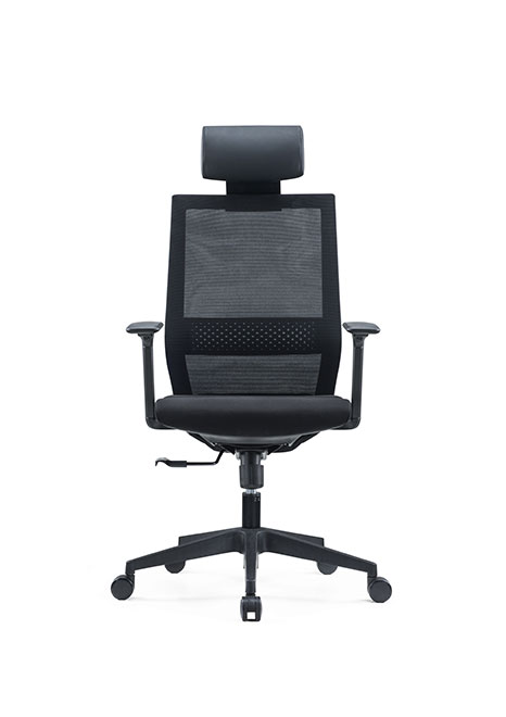 ESPALDA: En malla negra con soporte lumbar ajustable ASIENTO: Espuma moldeada BASE: Pirámide negra MECANISMO: Sincronizado con ajuste de profundidad del asiento BRAZOS: 3D negro