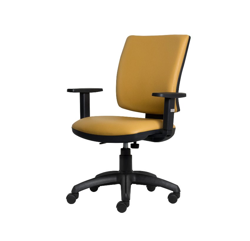 RESPALDO: Alto o medio tapizado, ajustable en altura ASIENTO: Tapizado BASE GIRATORIA: Negra MECANISMO: Contacto permanente o Syncron